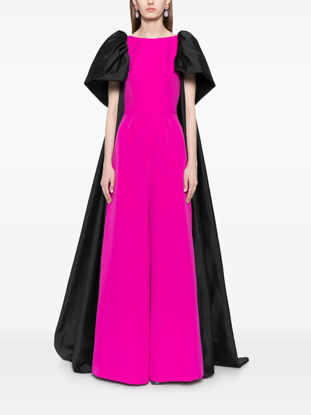 Elevate your wardrobe with this cape-detail wide-leg jumpsuit, expertly designed for a striking silhouette. The flowing cape adds dramatic flair while the wide-leg cut offers both comfort and sophistication. Perfect for formal events or stylish evenings, this jumpsuit blends fashion-forward details with ease of movement, ensuring you stand out with confidence and elegance.