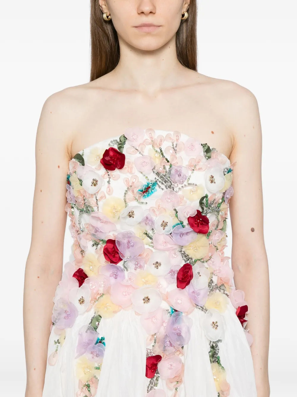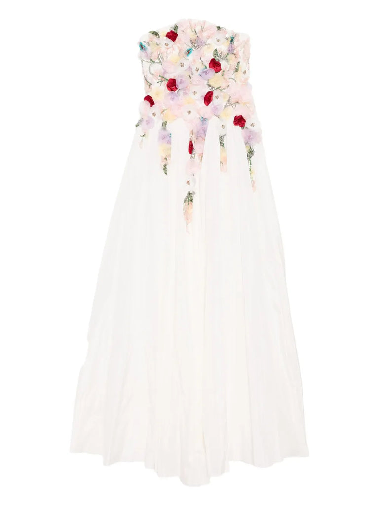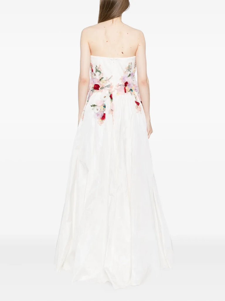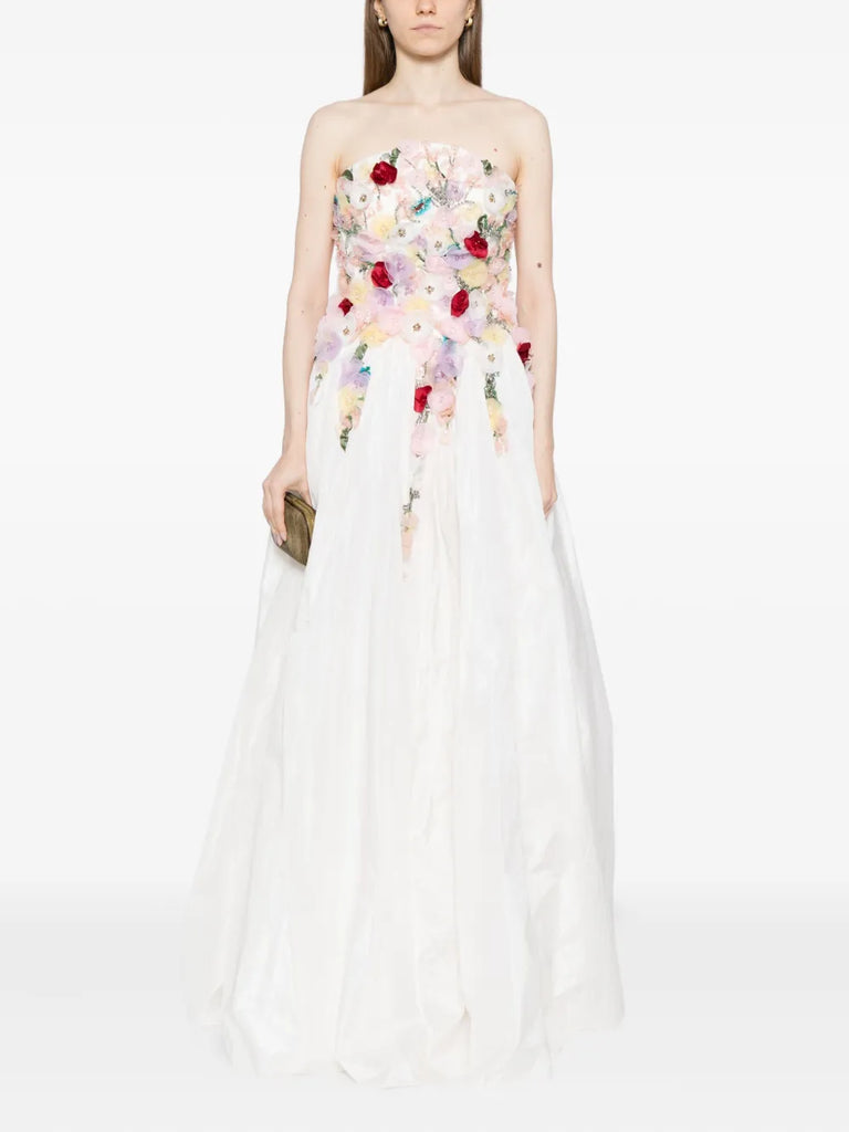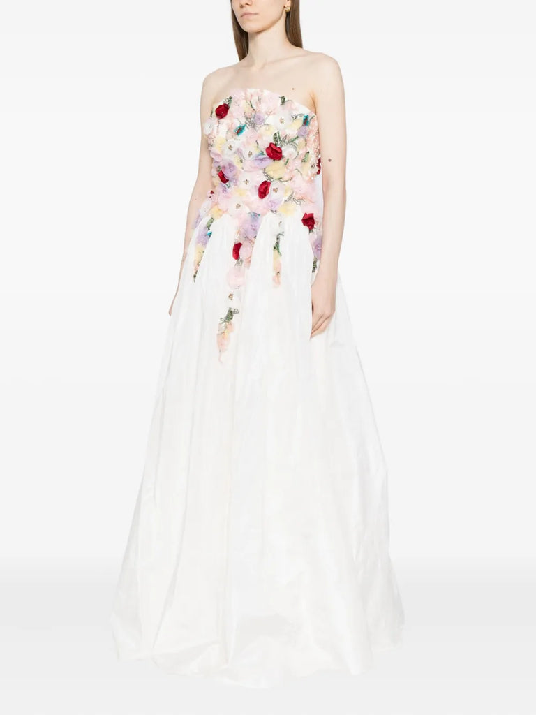 Embellished 3D flowers taffeta gown