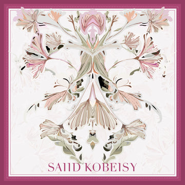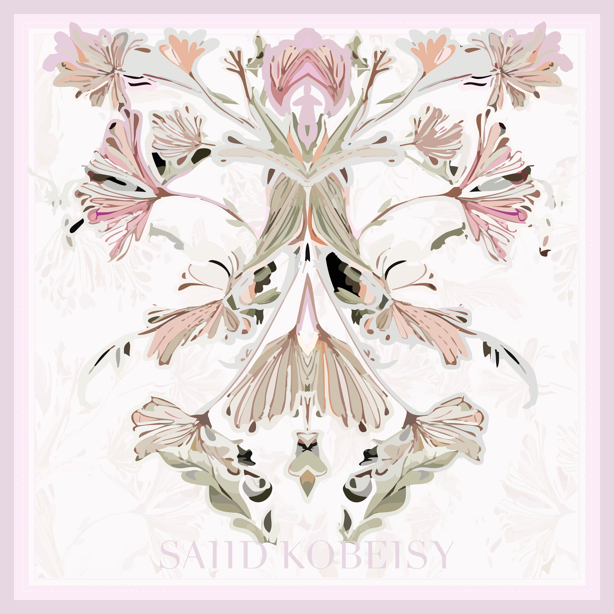 Elevate your wardrobe with our dandelion-inspired crepe georgette scarf in cactus flower color. Featuring a harmonious blend of pink, beige, and green hues with intricate symmetrical details, measuring 90 x 90 cm.