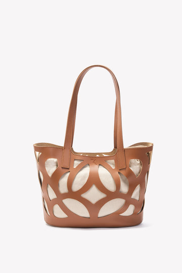 The Perforata Tote Bag is a striking, summery bucket bag that combines soft brown and beige hues for a warm, inviting look. Expertly crafted from 100% calfskin leather and gathered pouch canvas, it offers both luxury and durability. The delicate laser-cut design adds a unique, intricate touch, elevating the overall aesthetic. A removable canvas pouch provides added versatility, offering practicality for your daily essentials. With its perfect balance of style, functionality, and timeless charm, the Perforata Tote Bag is the ideal accessory for effortless, everyday elegance.
